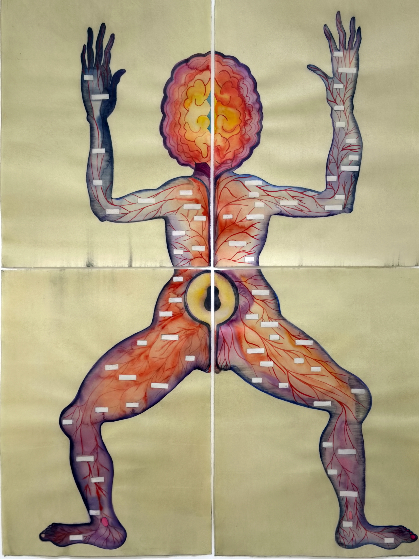 Eine nicht endend wollende graue Winterszeit ließ mich unterschiedliche Farbversuche mit Mustern starten, die formal zu Kreisen und Bögen gereiht waren. Die serielle, dichte Struktur erzeugt kinetische Effekte beim Betrachten.